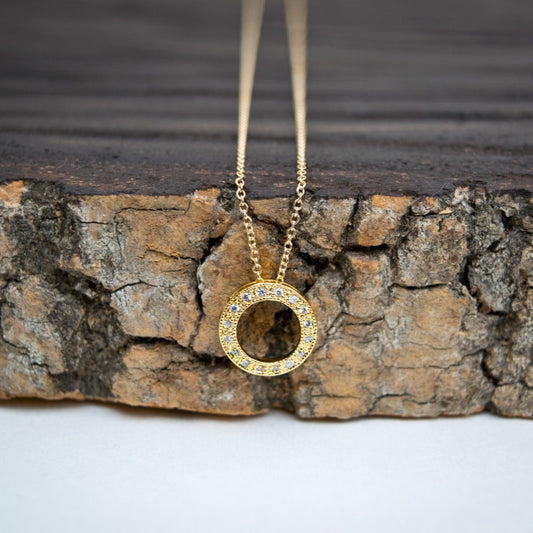 CZ Encrusted Circle Pendant NecklaceRegular price $50+Regular priceUnit price per-