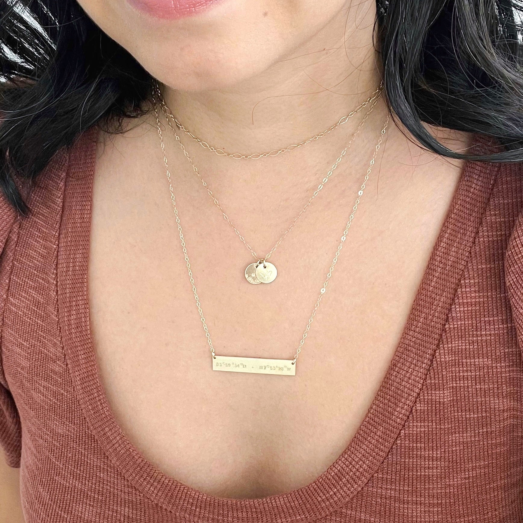 *Model is wearing the Coordinates Bar Necklace with the Lucy Choker and 2 disc Minima Disc Necklace.