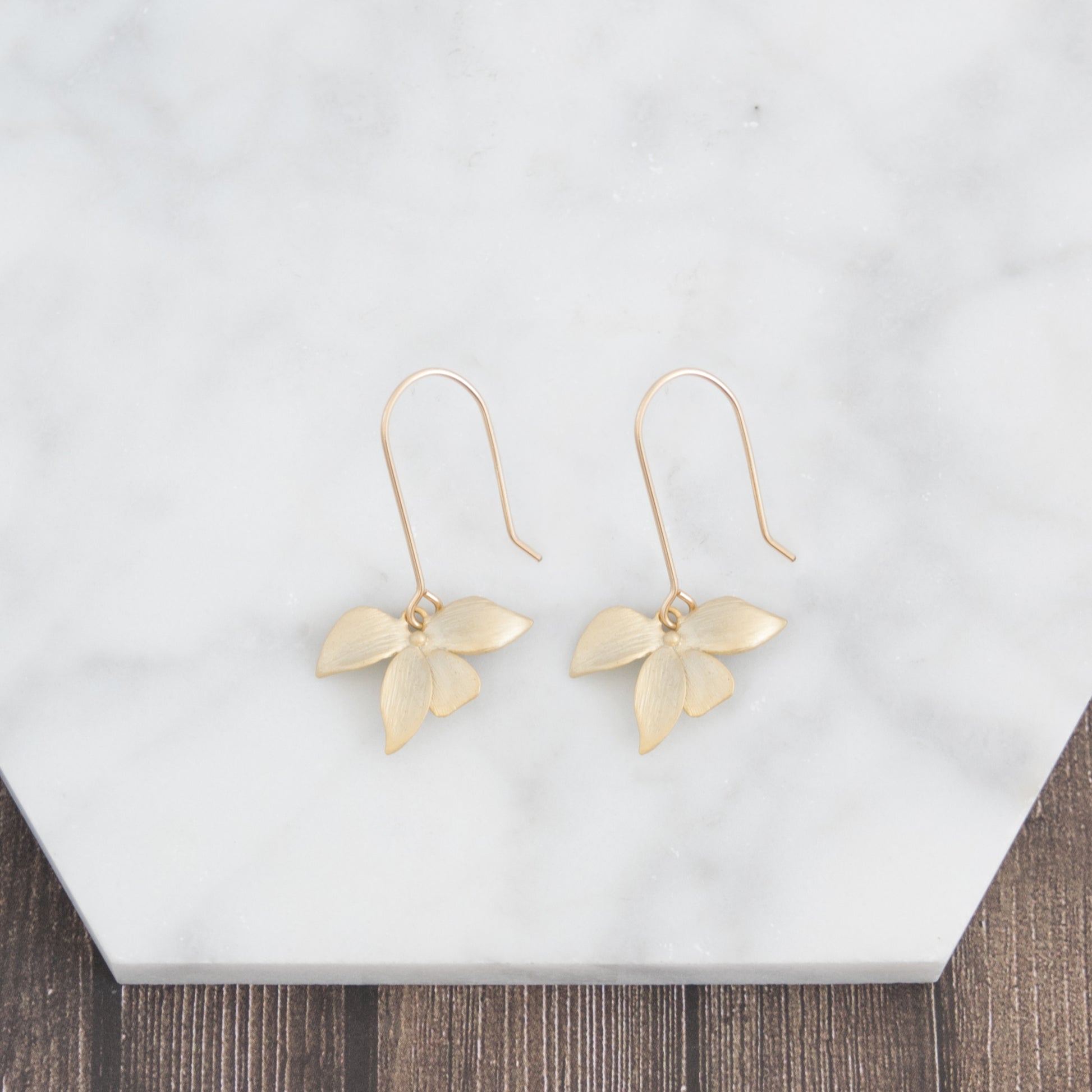 Simple and dainty! A single orchid hang elegantly on a hand-forged French ear hook to create the perfect, soft and romantic earrings.